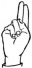 На ћирилици написано БЛАЖА МАНОЈЛОВИЋ састоји се из 15 слова [?]. Исписано ћириличном једноручном азбуком за глувонеме: